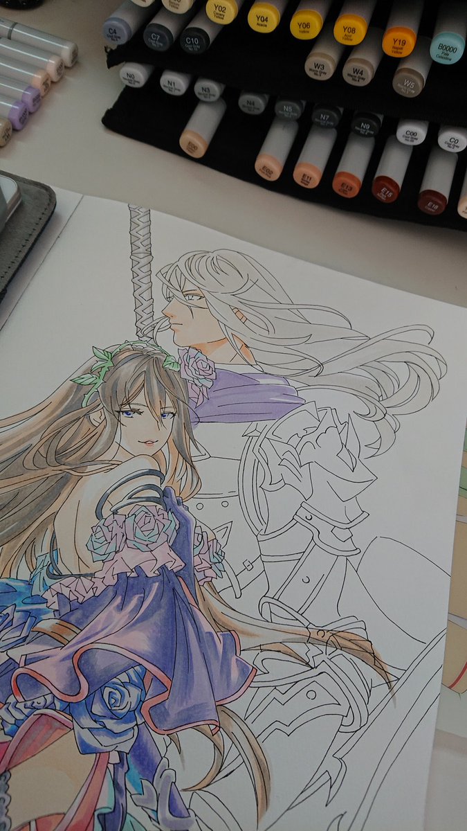 かずきち 今朝の親子 ぃや 真田と武田 後はホワイトと調整 仕事頑張る イラスト イラストリクエスト 模写 色塗り コピック イケメン戦国 真田幸村 武田信玄 イラスト拡散 フォロワーさんの推しが描きたい フォロワーさん増やしたい